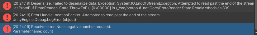 버퍼객체를 주고받는 테스트를 하던 와중 이런 오류들이 클라이언트(unity)에서 발생했다. 뭐라는지 알아보자
