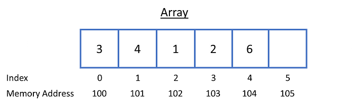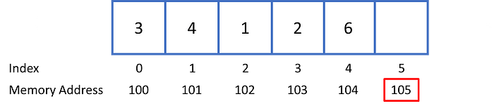 크기가 6인 이 배열에서 5개의 메모리 주소만 유용 하게 사용되고 있으며, 마지막 메모리 주소 105는 공간 낭비 로 작용합니다 . 이러한 유형의 발생은 특히 동적 데이터를 처리할 때 배열에서 흔히 발생하며 Linked List에서는 발생하지 않는 문제입니다.