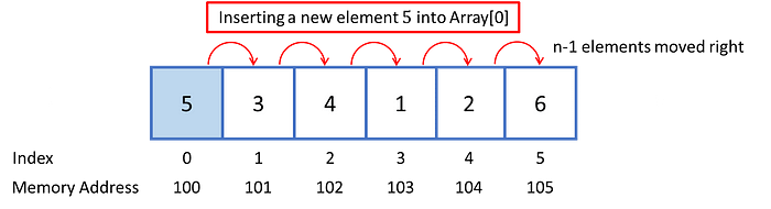 이는 배열의 시작 부분에 요소를 삽입하면 전체 배열이 오른쪽으로 한 칸 이동해야 하므로 최악의 시간 복잡도가 O(n) 이기 때문입니다 .
