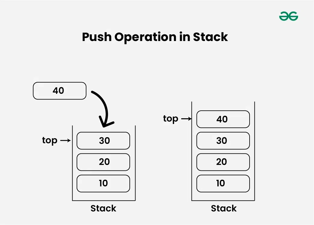 - 그렇지 않으면, top의 값을 1 증가시키고 (top = top + 1) 새로운 값이 최상위 위치 에 삽입됩니다 .