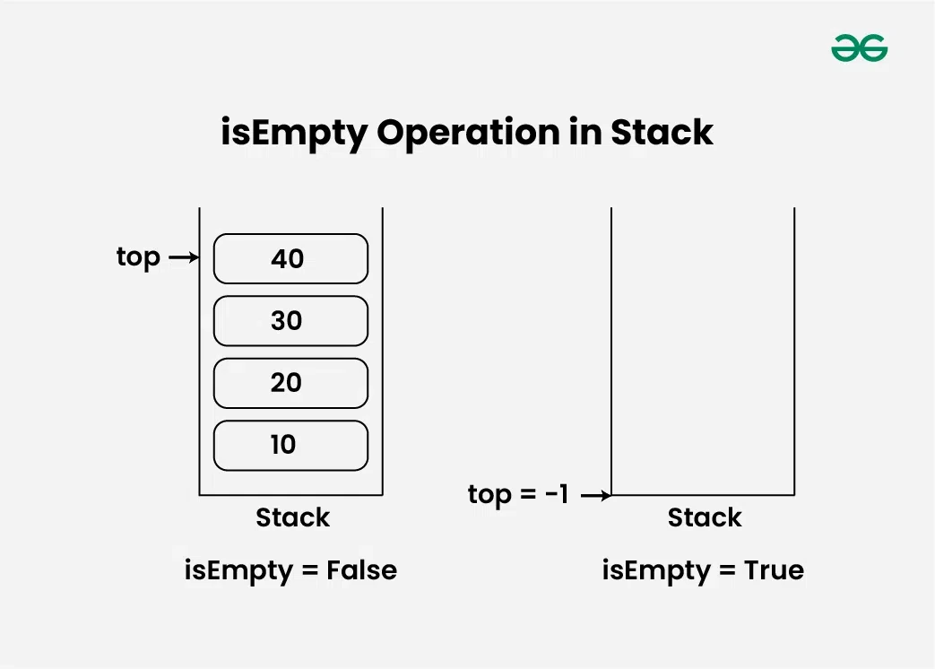 - (top == -1) 이면 스택이 비어 있으므로 true를 반환합니다 .