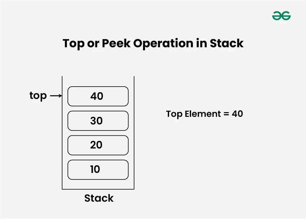 - 스택에서 top 의 값을 확인합니다 .