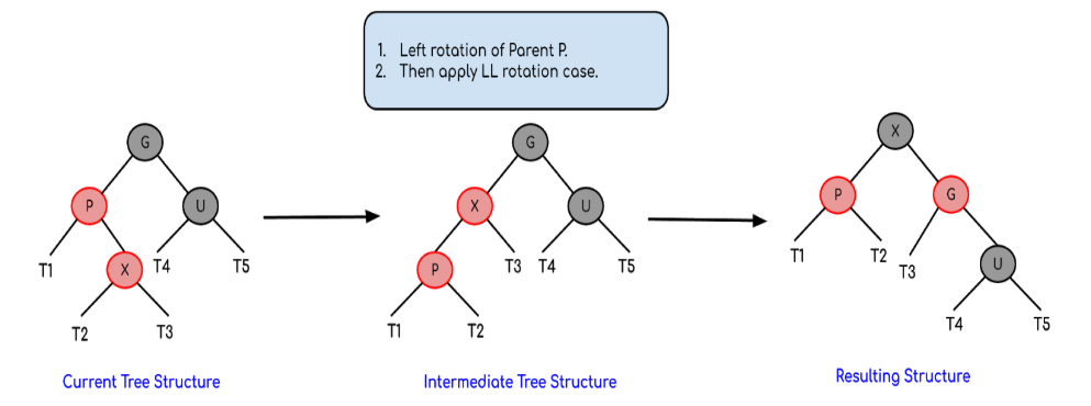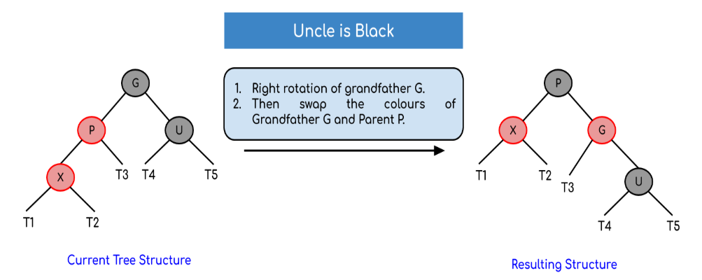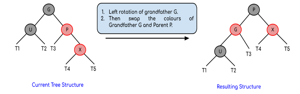 Left Left Case [3.b (i)] 및 Right Right Case [3.b (iii)]의 경우 회전 후 조부모와 부모 노드의 색상을 바꿉니다.