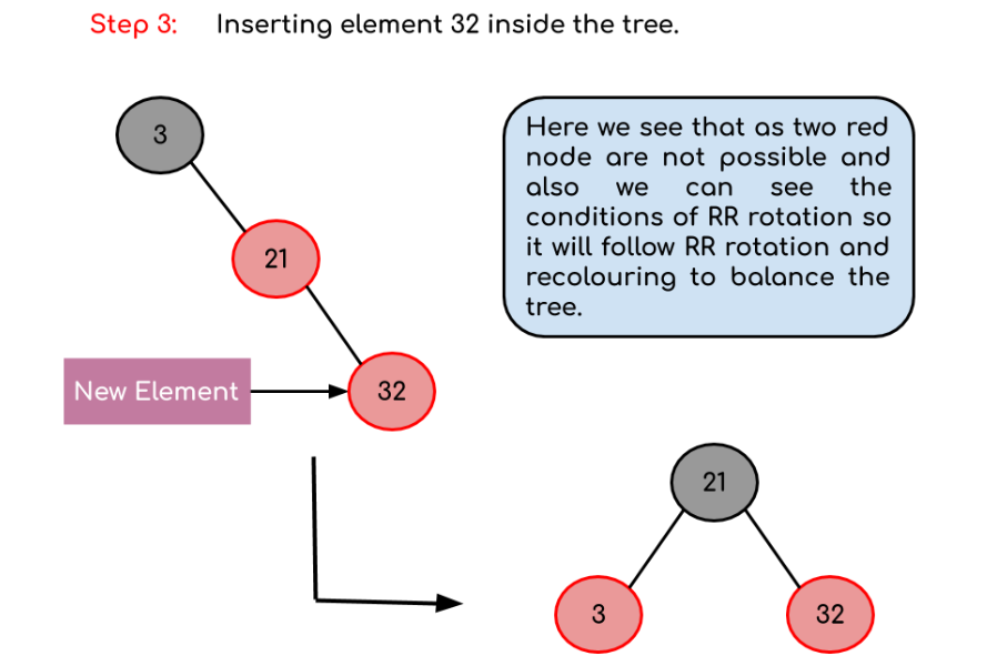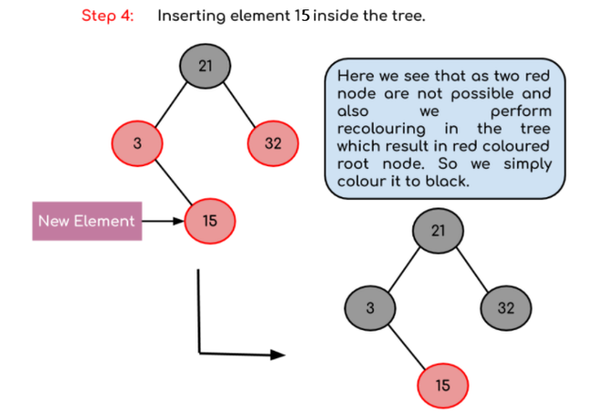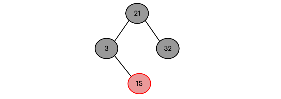 예: 빈 트리에 3, 21, 32, 15라는 요소를 포함하는 빨간색-검은색 트리를 만듭니다.