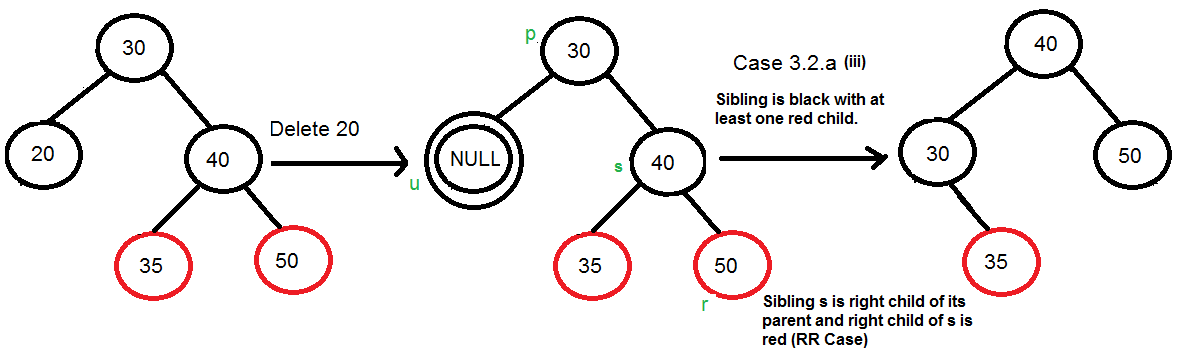 3.2) 현재 노드 u가 더블 블랙이고 루트가 아닐 때 다음을 수행합니다. 노드의 형제 노드를 s 라고 합니다 .