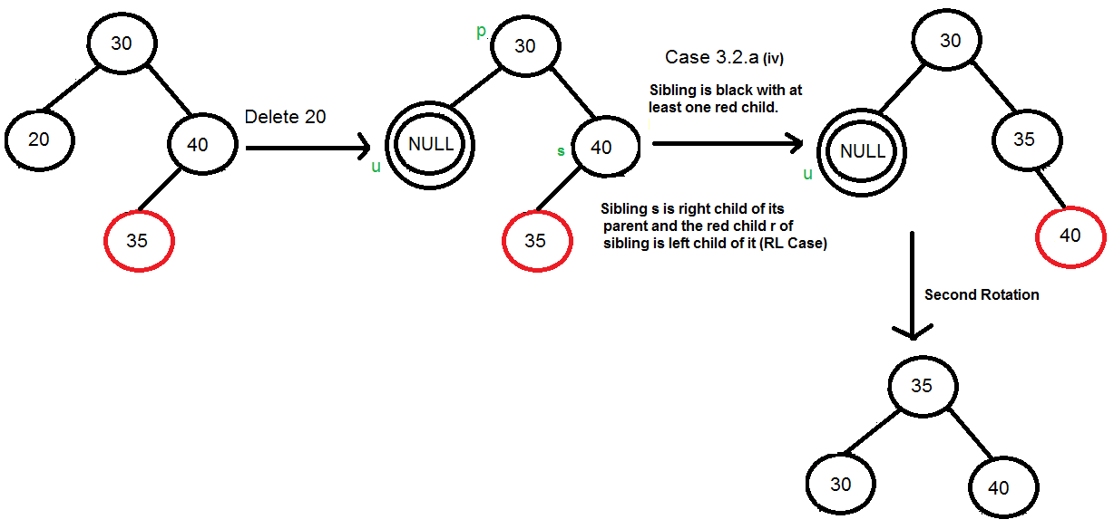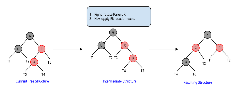 Left Right Case [3.b (ii)] 및 Right Left Case [3.b (iv)]의 경우 회전 후 조부모와 삽입된 노드의 색상을 바꿉니다.