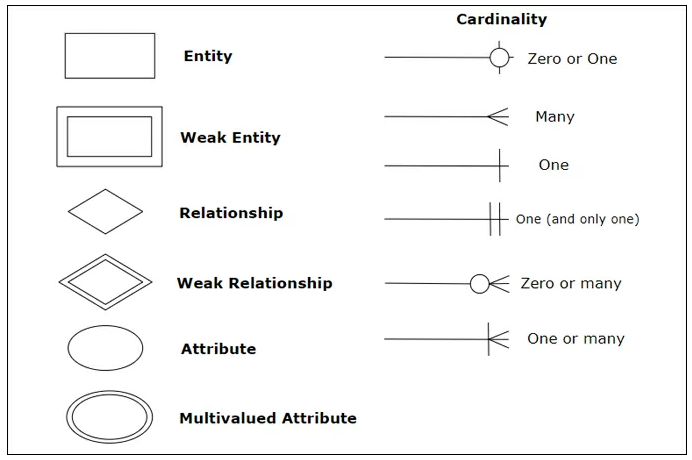 - 주요 요소: 엔터티(테이블), 속성(컬럼), 관계(1, M관계 등).