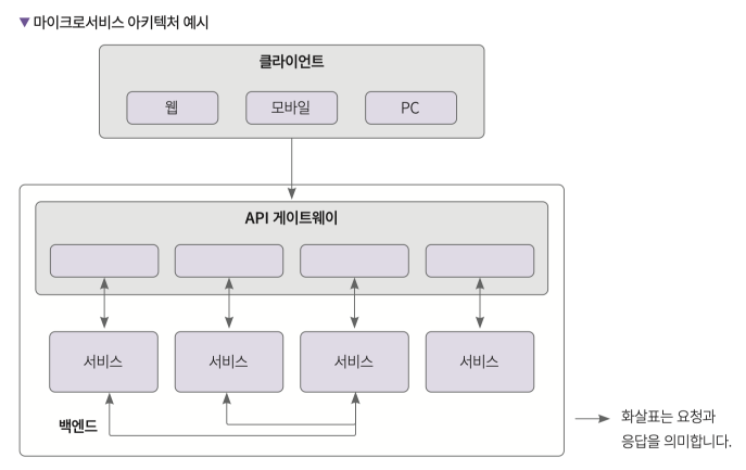 - 마이크로서비스는 애플리케이션을 작은 서비스로 나누어 API를 통해 상호작용합니다.